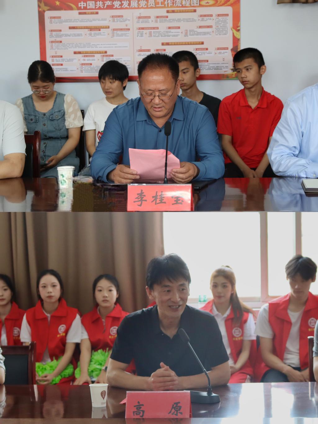 出席本次活动的有6776永利集团党委书记高原,党委副书记杨录,团委书记王艳丽,市中区教育事业服务中心七级职员李桂宝,市中区特殊教育中心校长王锦彬,党支部书记梁隆光,副校长刘适红、刘宪庆及部分师生代表。