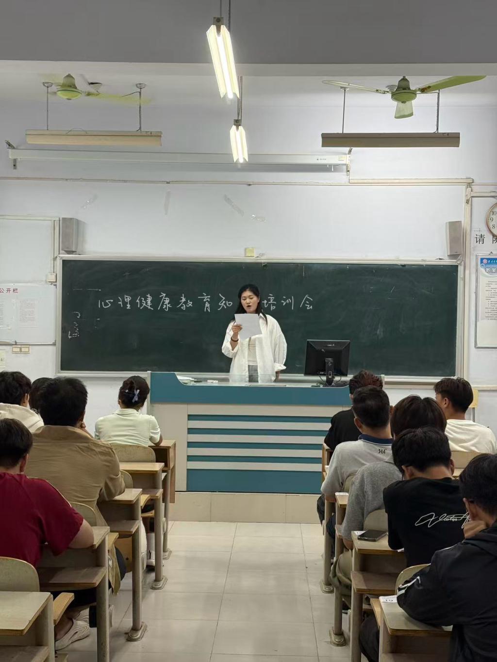 为提升学生心理健康工作队伍专业能力,强化校园心理健康防线,2025年9月18日晚7时,6776永利集团在教学楼6102室开展心理健康教育知识培训。本次培训由学院党委副书记杨录主讲,学生会主席刘春憶主持,全院心理委员、宿舍心理互助志愿者共40余人参加。