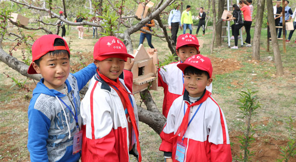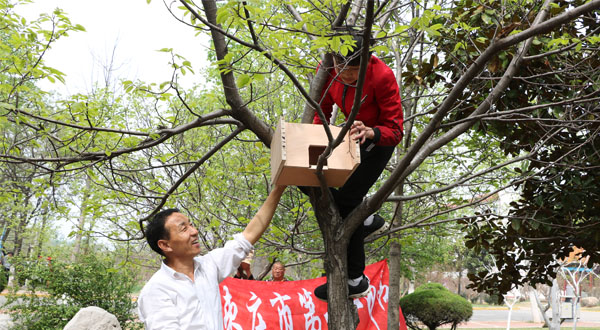 枣庄市百名大中小学生携手开展“爱鸟筑巢”活动