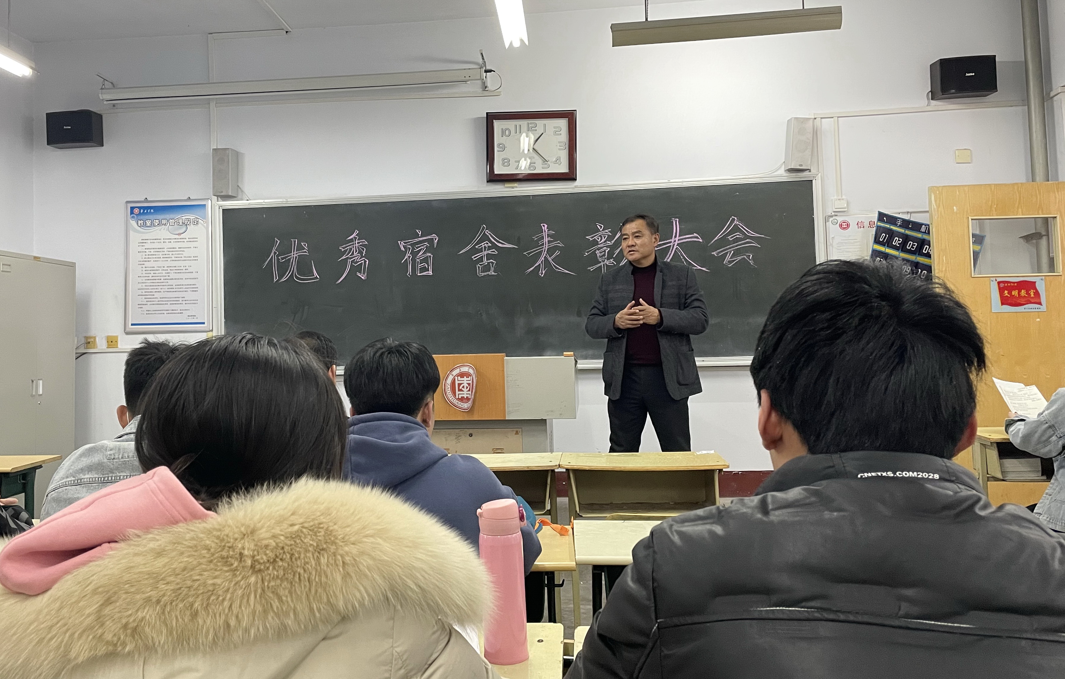 为不断完善学生自我管理、自我教育、自我监督功能,强化文明宿舍建设,营造和谐健康的宿舍氛围,3月15日中午,我院在体育楼6207室举办了“优秀宿舍表彰大会”。院党总支书记孟祥卫、党总支副书记副院长徐德刚参加了会议。