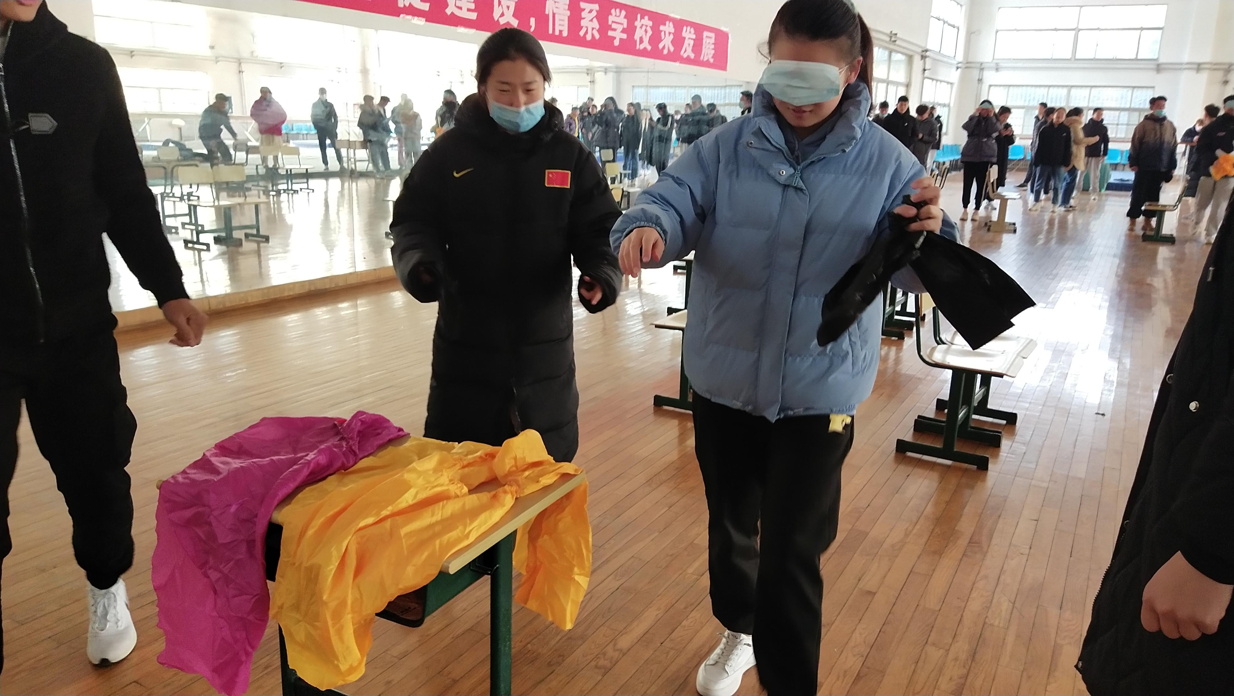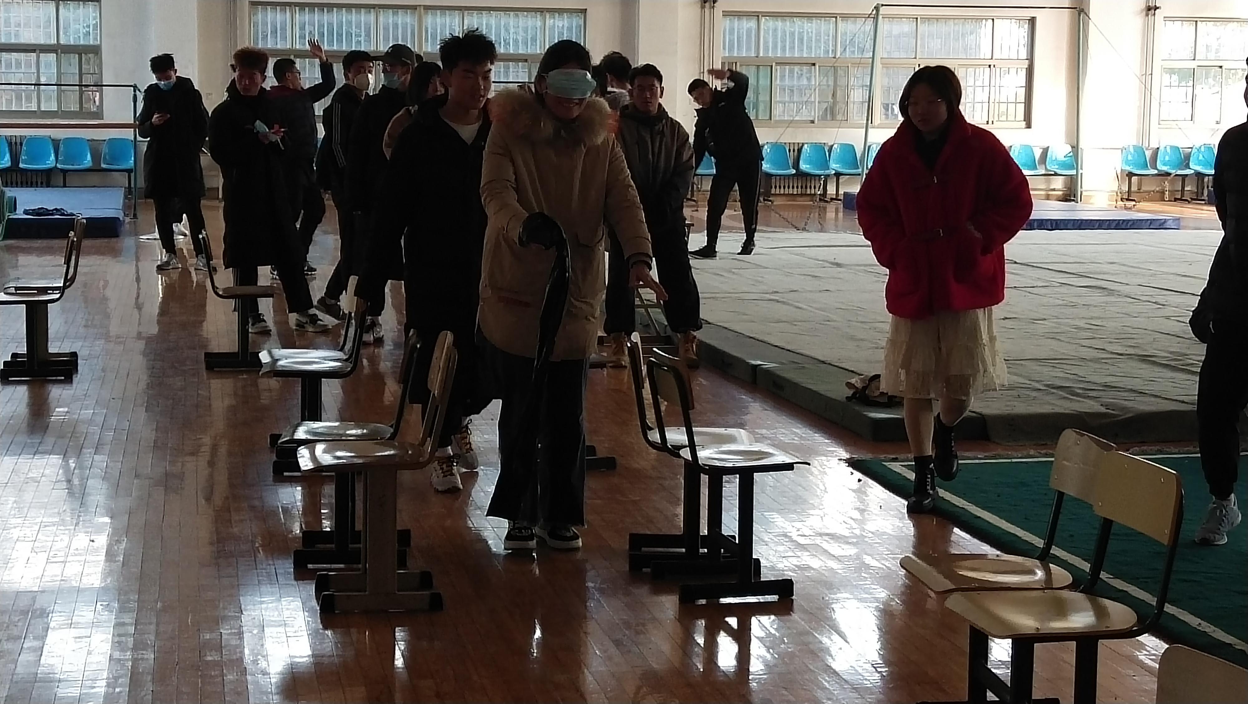 同学们先熟知通道地理方位后,遮住双眼,由一名同学指挥,凭借自己的触觉,听觉等感觉,由右侧开始,经直线,右转,左转的路线,从而到达目的地,并找到“宝贝”。在同学们熟悉环境之后,从心理上抹除了恐惧感,不仅增加了自己的感知能力,而且还增强了同学们心理接受事物的能力。此次活动,同学们都积极参与其中,达到了预期的效果。