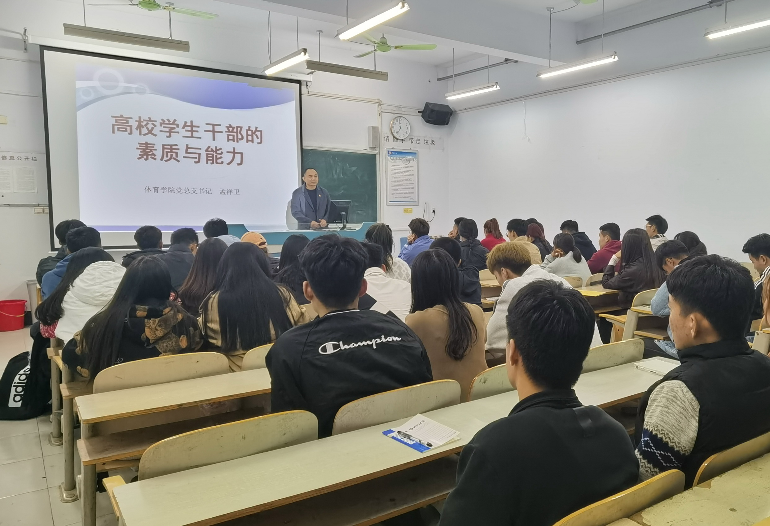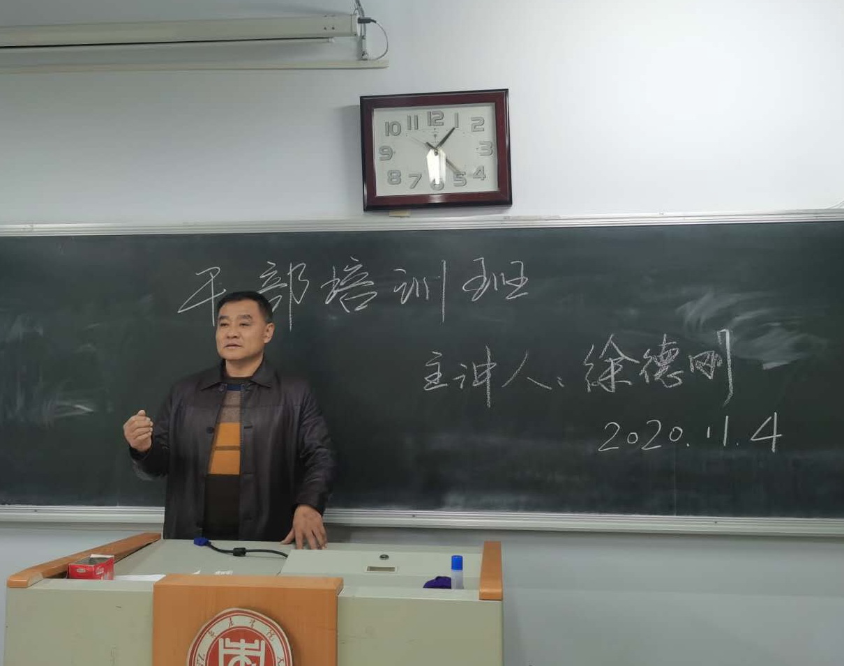 院党总支副书记、副院长徐德刚,以“学生干部应具备的基本能力”为题,结合学院具体工作实际,从学生干部的策划组织能力、执行能力、积极能动性、合作能力、临时处断能力、善于总结的能力、特别是学习能力等方面进行了讲解。徐德刚要求学生干部要做好联系学院师生的纽带作用,不断提高自己的综合能力,热心为同学们服务,协调好学习和工作间的关系、解决好同学之间的矛盾、做好老师的得力助手,为学院的团学工作尽到自己的一份力量。