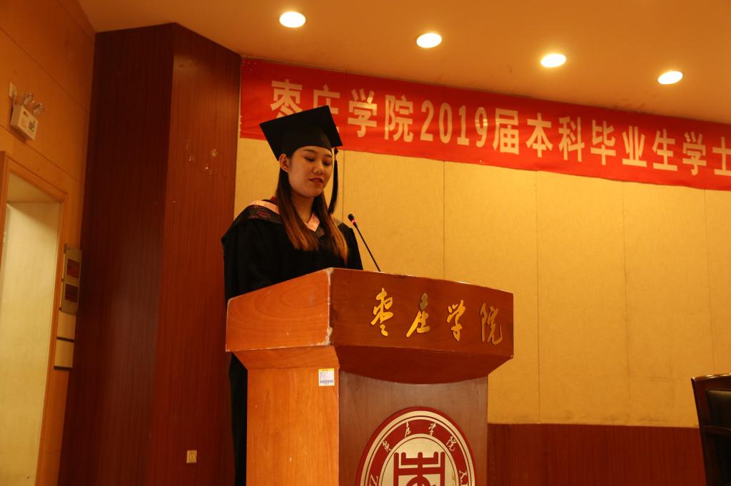 优秀学生代表郝梦群同学发言。韩建阳老师发表毕业贺词 接着,毕业生们登上舞台,李目海校长依次为每一位学位获得者扶正流苏、颁发学位证书,并与同学们亲切合影。
