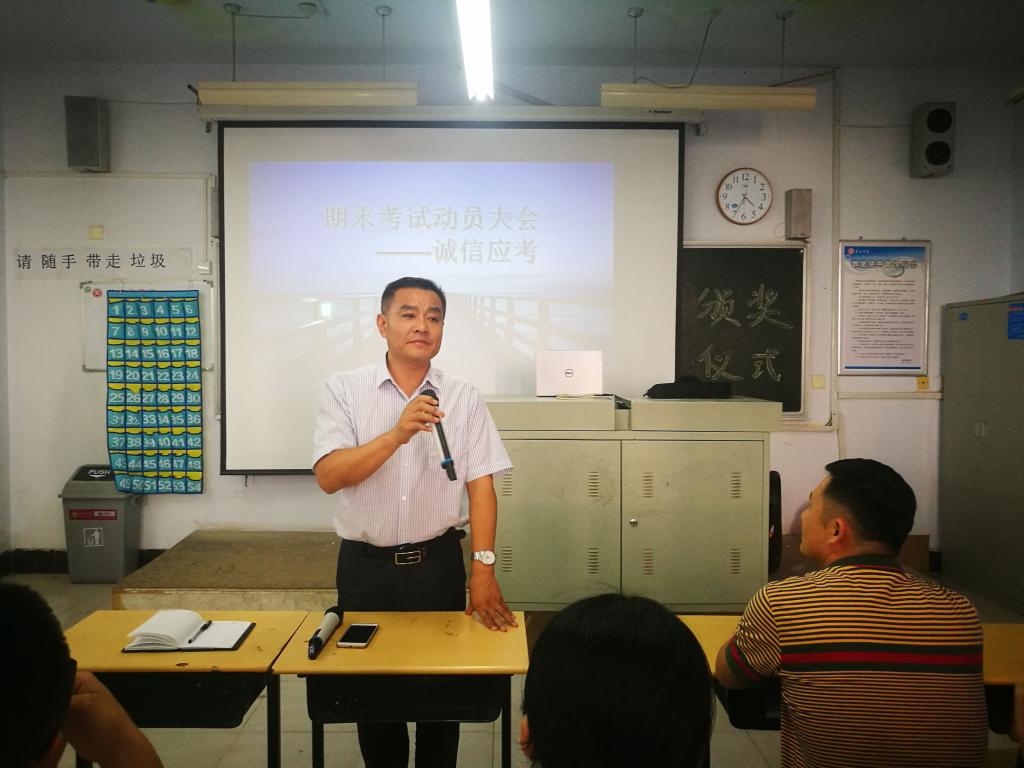 6月19日下午四点,6776永利集团在体育楼6202多媒体教室举行了期末表彰和诚信考试教育大会。6776永利集团副院长徐德刚、团总支书记孙晓燕、辅导员刘侠和各年级学生干部和学生代表参加了活动。