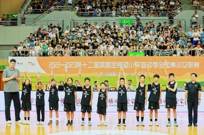 由北京姚基金公益基金会、中国青少年发展基金会、南通市政府共同主办,中国篮球协会联合发起的2022-2023第十二届姚基金希望小学篮球季全国集训及联赛,历经5天的集训及联赛活动,在江苏南通完美落下帷幕。本次全国集训及联赛活动过去5天里,来自全国各地25个省、自治区、直辖市的50支代表队,总计500余名小球员通过篮球联赛、篮球集训、室内课程、学习游览等多种形式度过了一段精彩纷呈、充实难忘的夏日时光。更重要的是,他们在全国赛活动中,强健了体魄、结交了朋友、开阔了视野、增长了本领。联赛闭幕当晚,除现场近6000名观众外,还有登录各直播平台观看比赛和闭幕式的场外观众,一起为孩子们的成长欢呼,共同为体育精神喝彩。