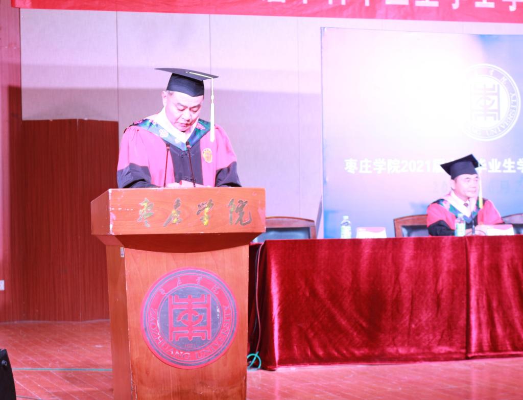 院长谢旭东首先致辞,代表学院向圆满完成学业的2021届本科毕业生表示最热烈的祝贺,向辛勤培育、倾情服务的老师、教职员工和学生家长们表示深深的感谢!并对毕业生们提出了希望和要求:一是要保持一颗责任心,自信从容走向社会,脚踏实地,坚守理想,淡然面对困难,从容面对挑战,智慧化解矛盾;二是要保持一颗进取心,怀揣梦想开创未来,作为新时代的大学生,要高扬理想,追求梦想,不懈奋斗;三是要成熟自信诚信为人,追求内心平和豁达,在海阔天空的人生大道上去实现自己理想,以自信、勇敢的心态去迎接人生新的挑战。