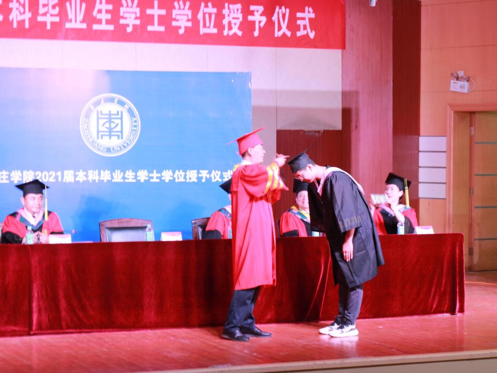 伴随着欢快的乐曲,副校长安涛教授与毕业生们一一握手,正冠拨苏、颁发学位证书、合影留念,并送上祝福的话语。现场同学们用热烈的掌声表达此时心中的喜悦与激动,并共同见证人生中这个庄严而又欢乐的时刻。