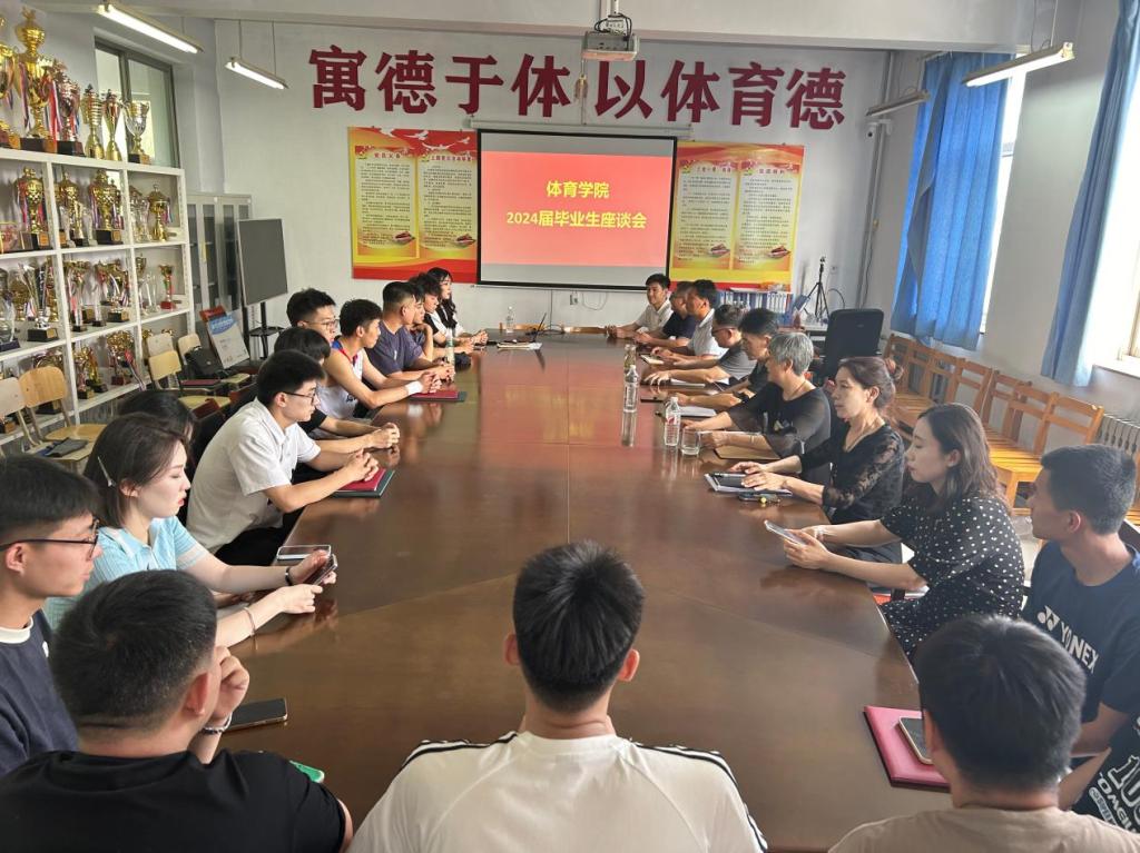 为更好地倾听毕业生心声,不断强化学院就业育人、管理育人、服务育人的针对性与实效性,畅通学院发展和专业建设渠道,提升专业建设质量和水平,6月18日下午,体育学院在体育楼会议室召开2024届毕业生代表座谈会,学院党政班子成员、专业负责人和毕业生代表参加会议。会议由党总支书记高原主持。