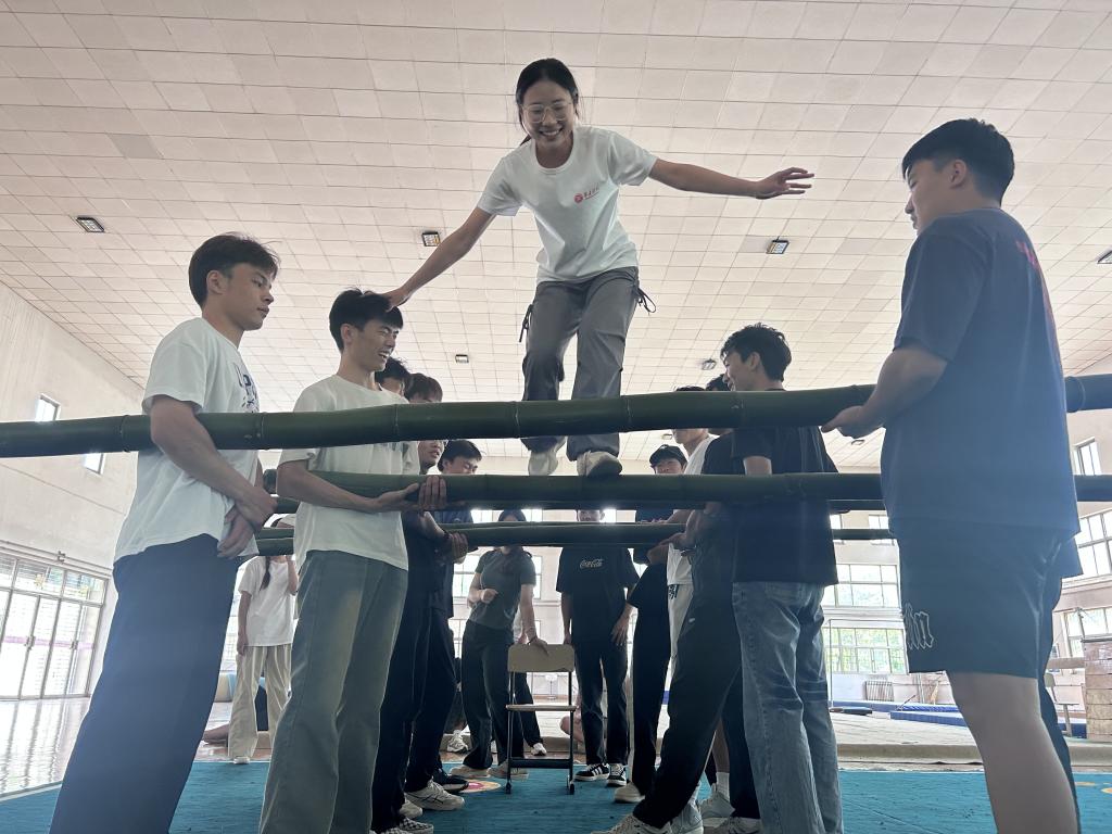 2025年6月5日,6776永利集团体操馆内掌声与鼓励声汇聚成河。23级体育教育本科两个班级60名学子共同参与“挑战云梯”心理拓展活动,在悬空的竹梯之上,集体书写了一堂关于信任与协作的实践课。