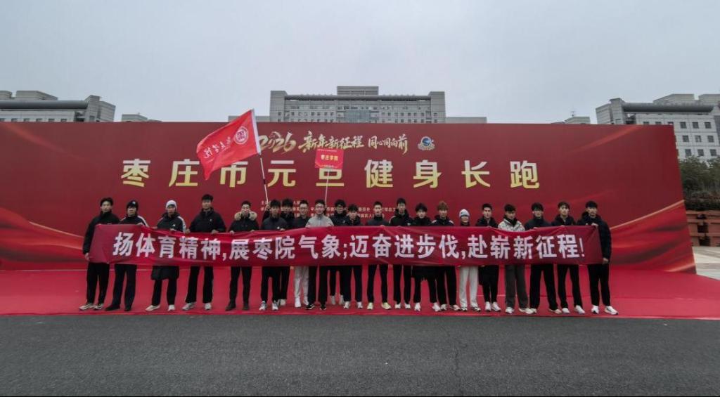 本次元旦健身长跑活动是枣庄市全民健身的开年重头戏,是我市迎接新年的传统健身项目。活动由枣庄市人民政府主办,枣庄市体育局、市委市直机关工委、市总工会、市卫健委、市教育局联合承办,吸引了来自市直各部门、各区(市)、各企业和各单项体育协会的80个代表队近万人参与。活动中,我校代表队队员高举校旗,精神抖擞、步伐铿锵,在冬日的赛道上形成了一道亮丽的青春风景线。