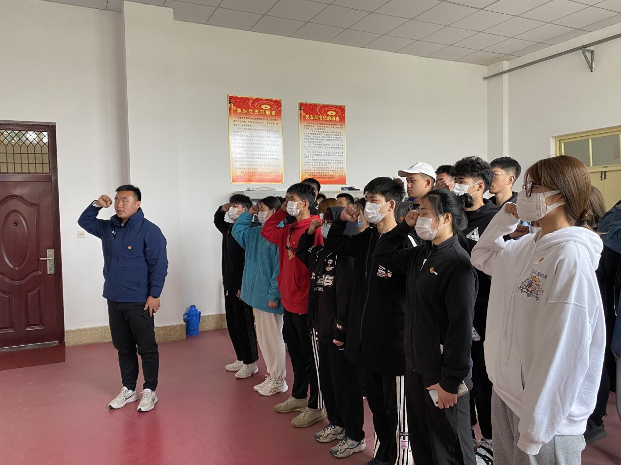 最后,团总支负责人高鹏老师带领全体同学重温入团誓词,重拾入团初心,再次接受了一次思想洗礼,坚定了“不忘初心跟党走”的理想信念,坚决做好党的忠实助手和可靠后备军!