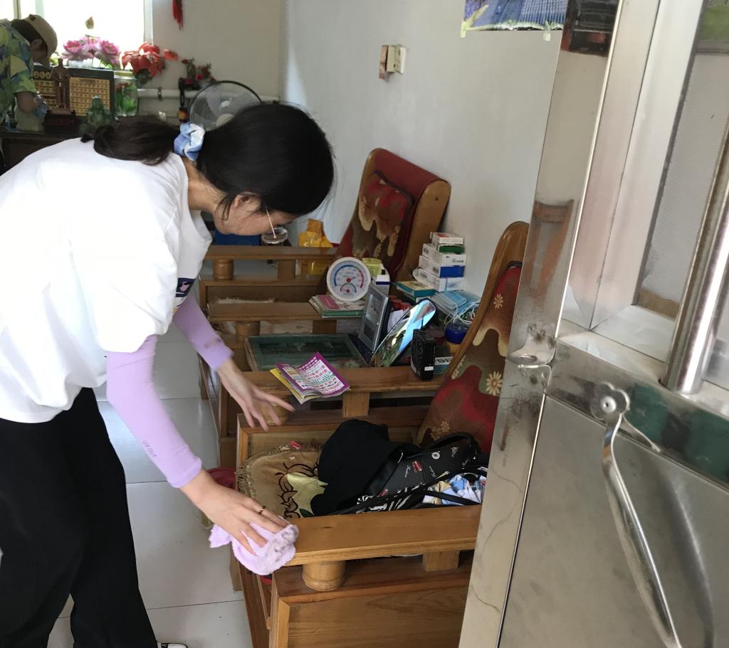 之后,一部分党员去帮助敬老院的花园菜地除草,一部分为老人们打扫屋子,擦洗桌椅等。经过党员们的一番劳动,花园菜地收拾的干干净净,屋子里打扫的都亮亮堂堂。