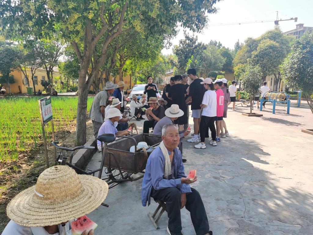 在党支部书记刘侠老师的带领下,党员们一行来到敬老院。敬老院里大都是所在镇的孤寡老人,党员们首先为老人送上自行筹款购买的草帽、水杯等物品,与老人们亲切交流,询问老人们的身体状况和生活情况,耐心听他们唠家常,给原本沉静的养老院带来一派欢乐景象。