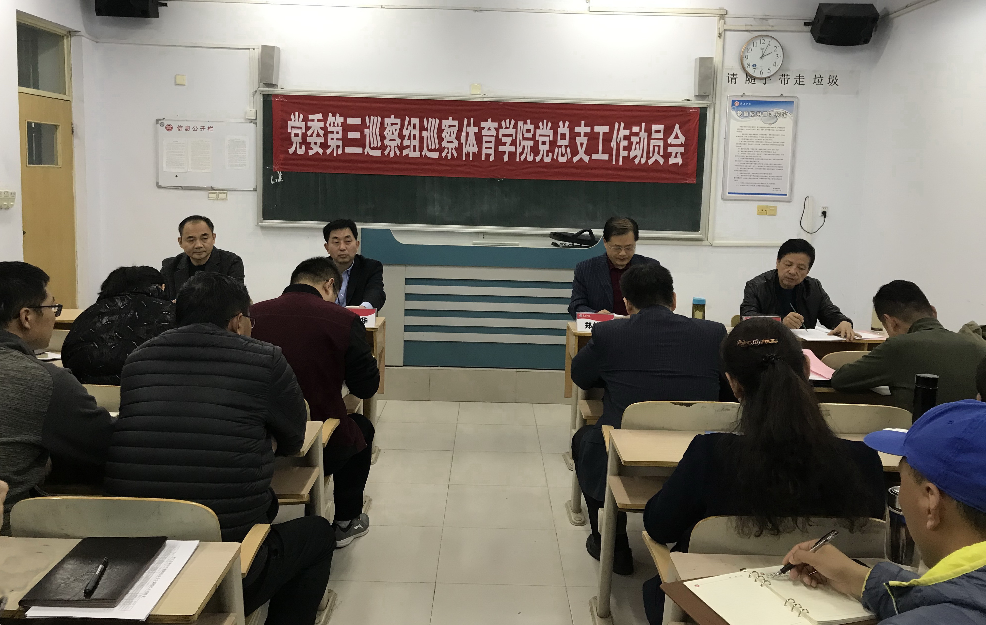 11月25日下午,党委第三巡察组巡察6776永利集团党总支工作动员会在体育楼6102室召开。党委巡察工作领导小组成员、纪委副书记、正处级监察员石少华代表学校讲话,党委第三巡察组组长郑付海对巡察工作进行动员部署,6776永利集团党总支书记孟祥卫主持会议并作表态发言。党委第三巡察组全体成员,6776永利集团领导班子成员、全体教职工、学生党员共50余人参加会议。