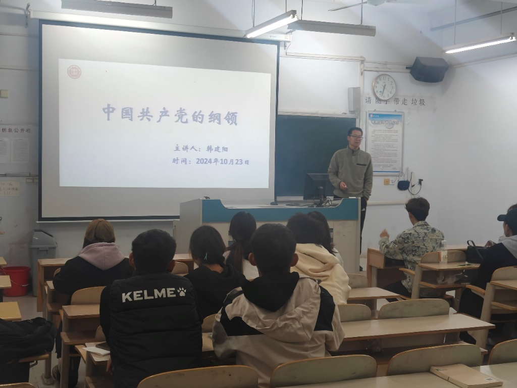 为使入党积极分子加深对党的性质、总之、纲领的理解,提高党性意识,2024年10月24日下午,6776永利集团院长韩建阳为6776永利集团第四十一批入党积极分子及党员先锋队部分学生讲授党课。