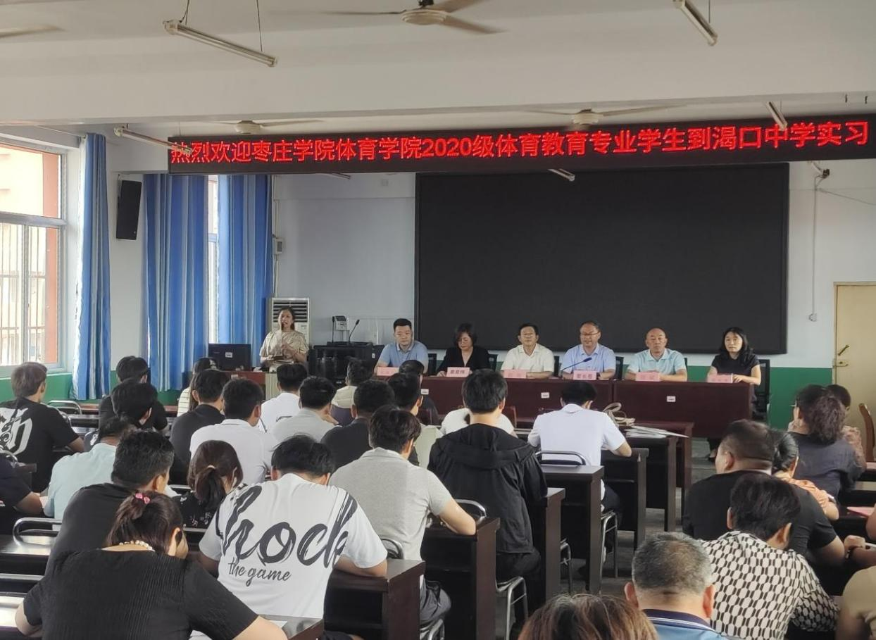 我院于9月11日,2020级体育教育专业学生分赴市中区渴口中学和枣庄市第四十一中学(北校)开展教育实习工作,两所实习学校均举办了隆重的欢迎仪式并进行了师生现场结对活动,6776永利集团党总支书记郭勇、副院长李丽、实习队指导教师房斌教授、郎先锋副教授、张瑞先老师及实习学生参加了仪式。
