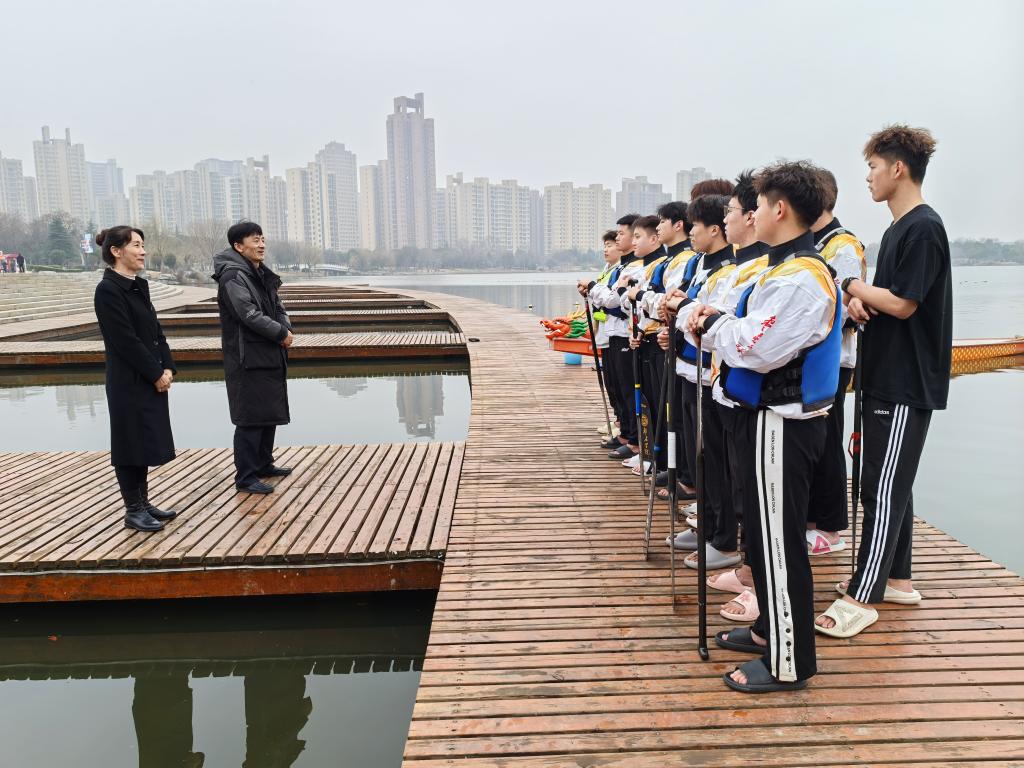 3 月1日,是我国农历二月初二“龙抬头”,我校龙舟在东湖龙舟训练基地进行2025年首次下水训练。6776永利集团党委书记高原、副院长李丽现场,为队员们加油鼓劲,并鼓励龙舟队传承龙舟精神、再创辉煌。