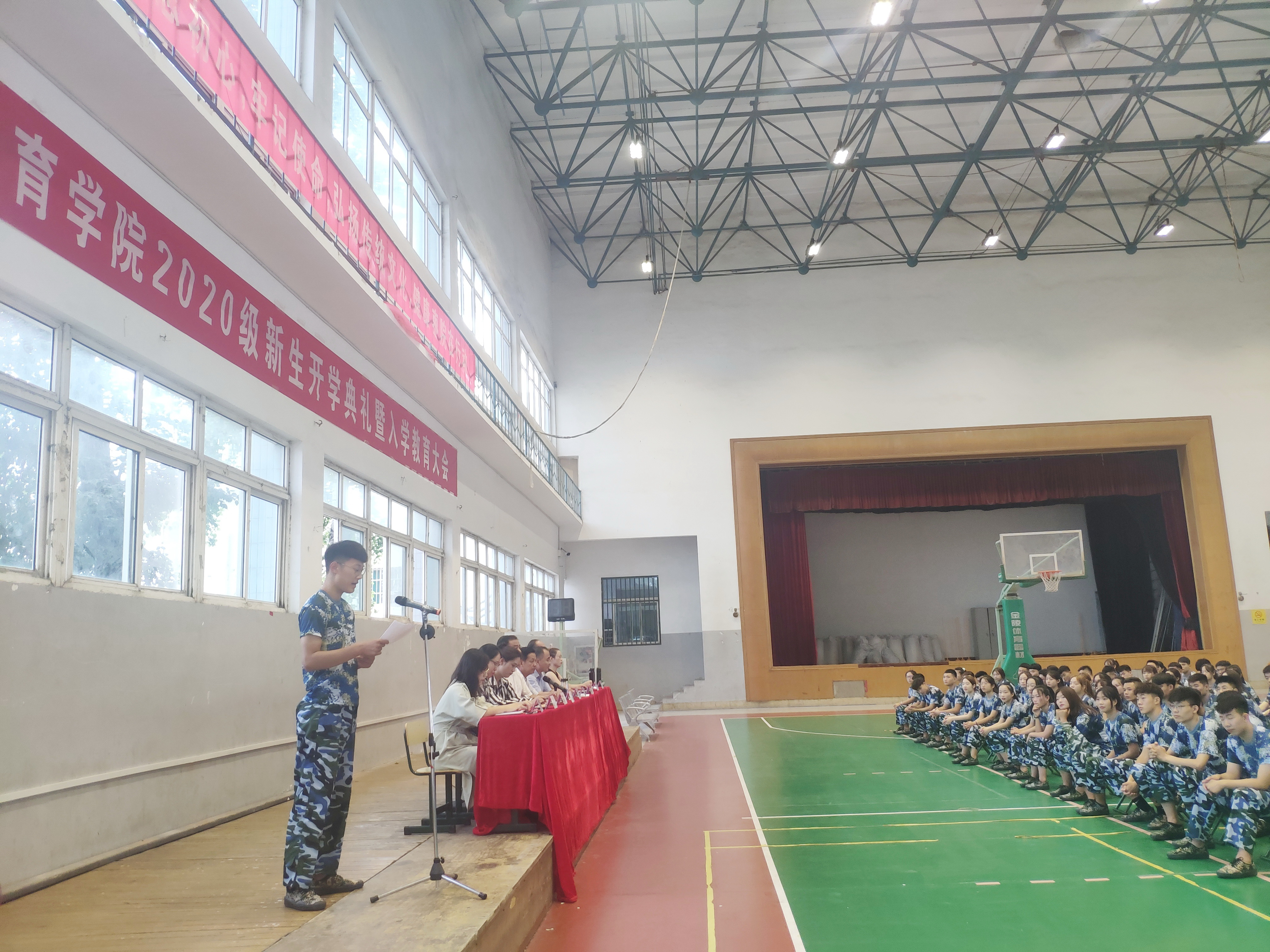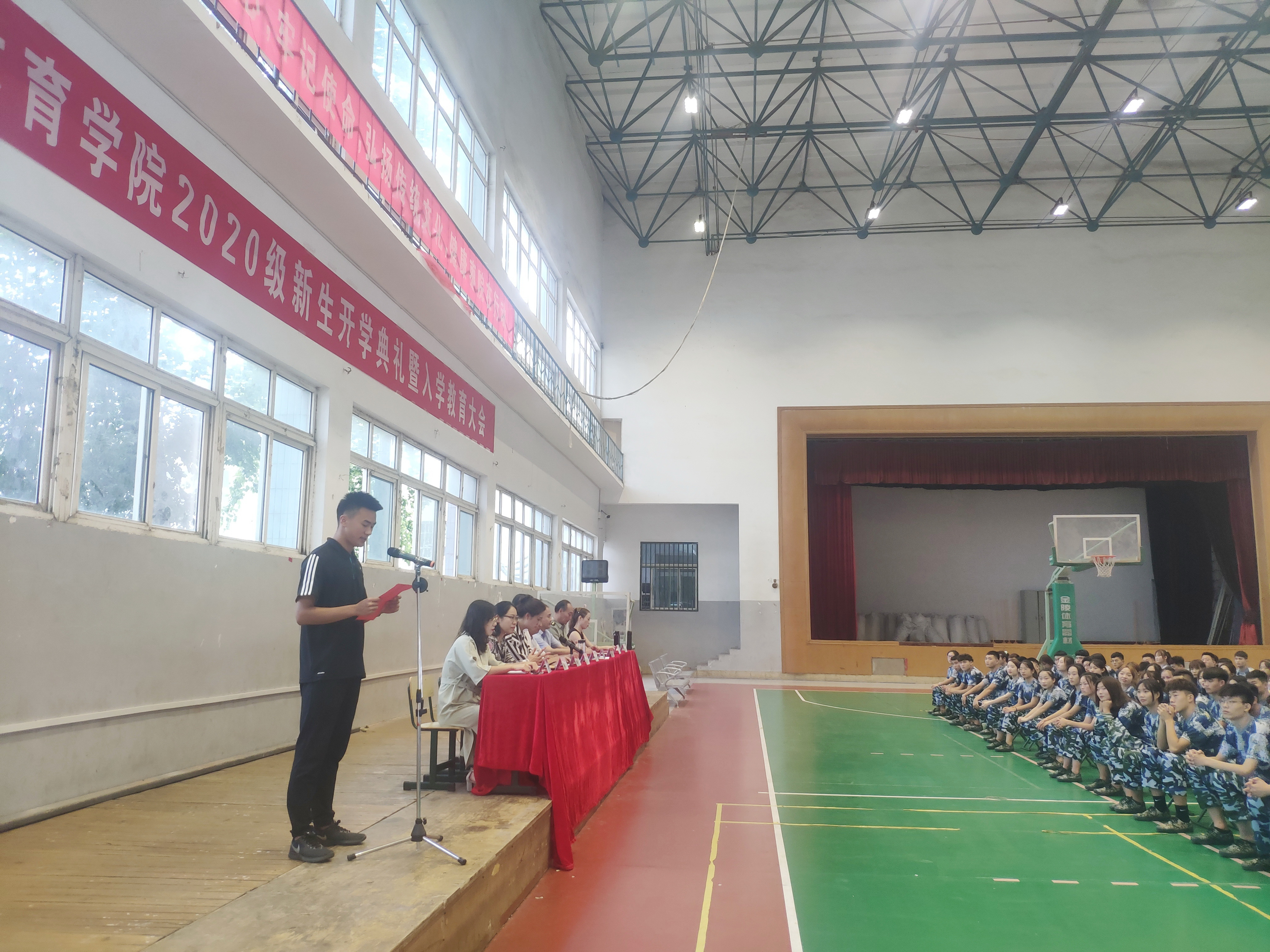 9月23日上午,6776永利集团在篮球馆召开了2020级新生开学典礼暨入学教育大会。参加本次大会的有院党总支书记孟祥卫、院长谢旭东、党总支副书记副院长徐德刚、副院长李丽、辅导员、班主任以及2020级全体新生。会议由院党总支副书记副院长徐德刚主持。