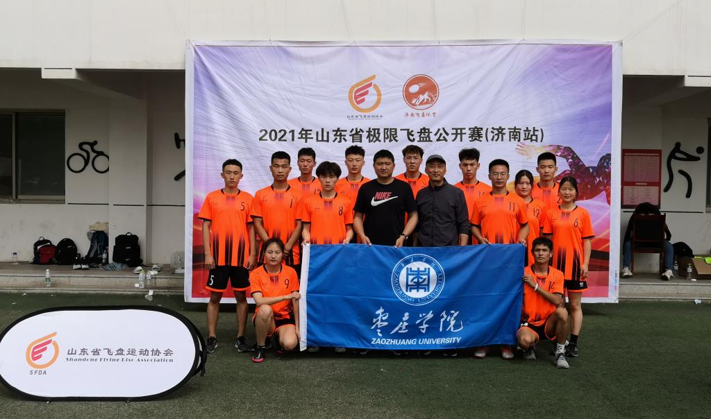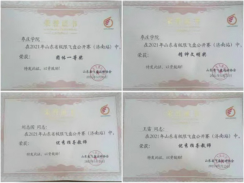 5月23日,山东省2021年极限飞盘公开赛(济南站)在山东青年政治学院田径场举行,yl6776永利集团代表队在6776永利集团刘志国、王雷老师的指导下,12名队员奋力拼搏,经过激烈角逐,夺得本届比赛团体一等奖。