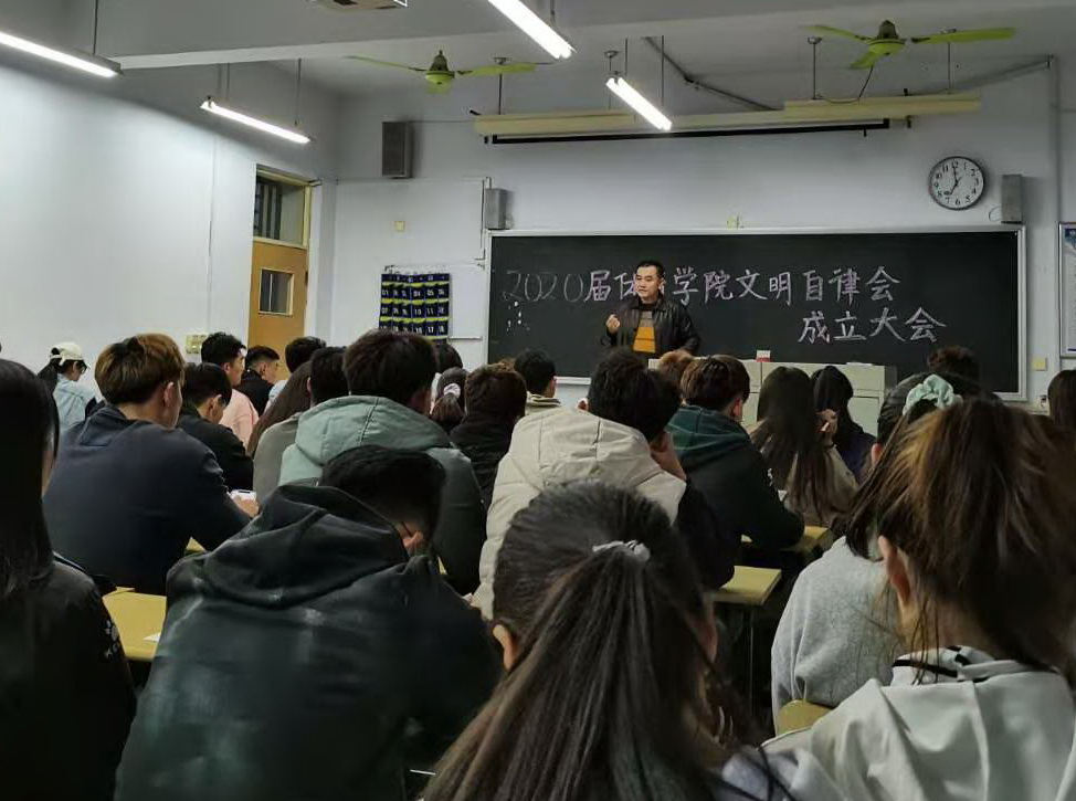 徐德刚结合自身的工作经历,讲述进入学生会、自律委员会,一个提高自身素质能力的大平台、是一次能更好的锻炼自己的机会指出学院学生工作的顺利开展需要依靠在座的每一位学生,所有学生干部都要提高自己的思想站位,结合本部门的工作职责,贡献自己的一份力量树立全心全意为同学们服务的思想,处理好学习与工作的关系,准确定位尽己所能,展己所成,为学院的团学工作奉献自己的力量