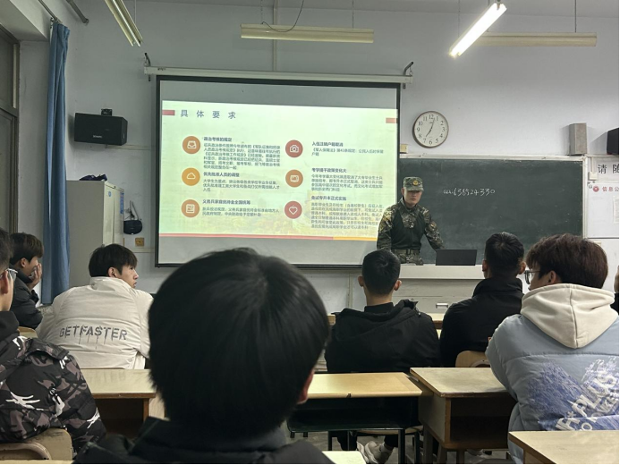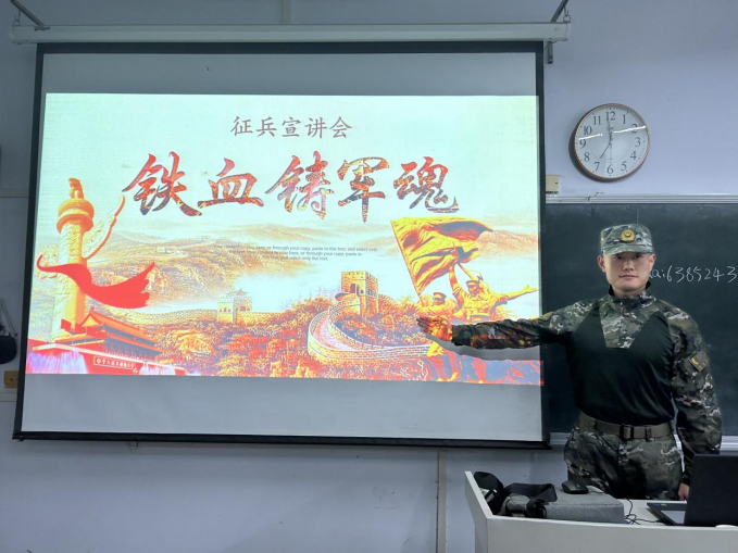 此次宣讲会邀请退伍同学开展宣讲活动,重温入伍动机、讲述部队故事、分享退伍生活,在全体学生范围内,大力倡导应征入伍,结合应征入伍进行宣讲。对于同学们提出的问题,也做出详细具体的回答,如征兵入伍条件要求、基本流程等。